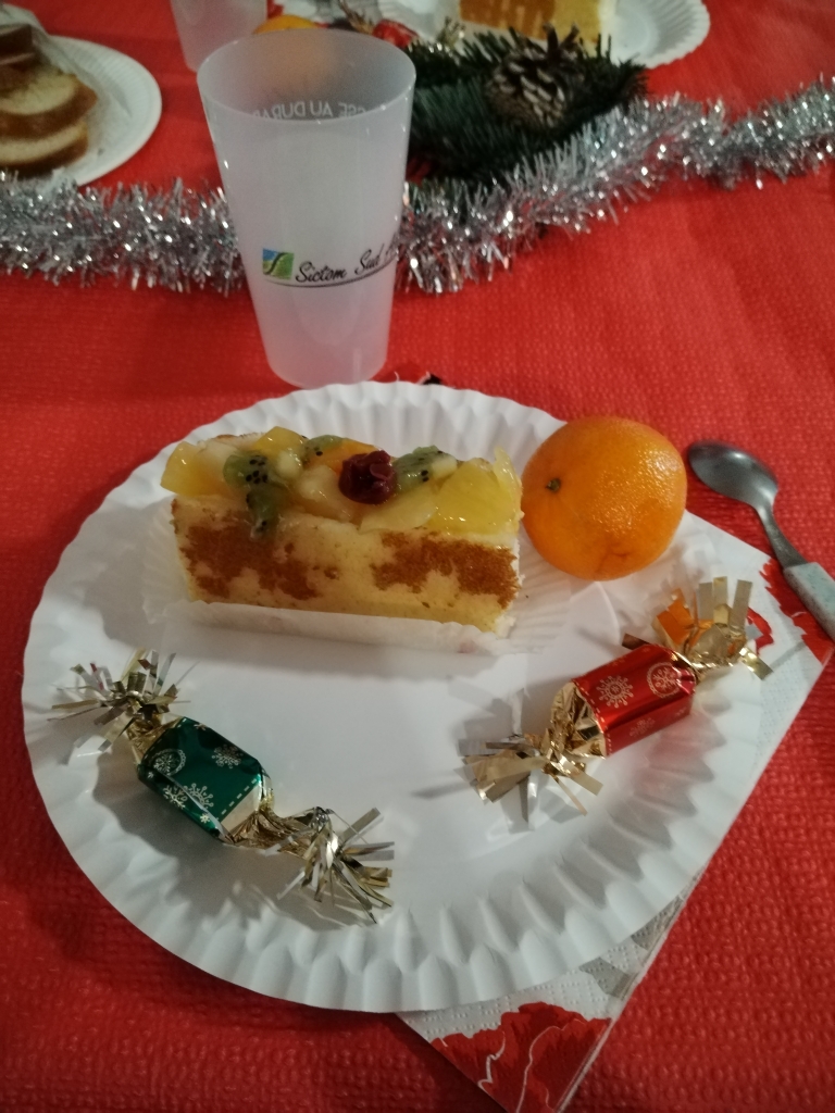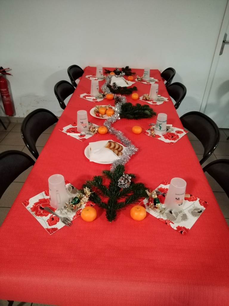 Les festivités lancées, une délicieuse bûche a été servie par les lutins, complétée par brioche, papillotes, clémentines, le tout agrémenté de cidre, jus de fruits, café, thé, tisane.